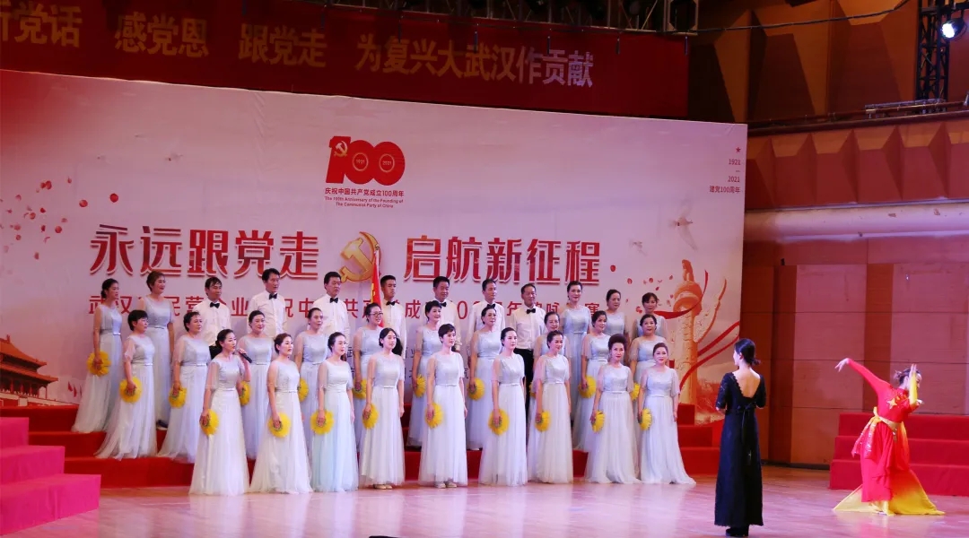百年风雨沧桑,百年壮丽辉煌,我们迎来了中国共产党的百年华诞。6月25日下午,由武汉市委统战部、市工商业联合会举办的“武汉市民营企业庆祝中国共产党成立100周年歌唱比赛”在市青少年宫音乐厅隆重举行。在武昌区工商联会员企业党委的推荐下,永业行合唱团与来自全市各区工商联、工商联所属商会、会员企业的15支队伍纵情高歌,唱响红色经典。永业行合唱团以饱满的情绪深情献唱的经典歌曲《在希望的田野上》,以新颖的演唱形式、丰富的表演内容得到了专家评委和现场观众的认可,荣获比赛三等奖。