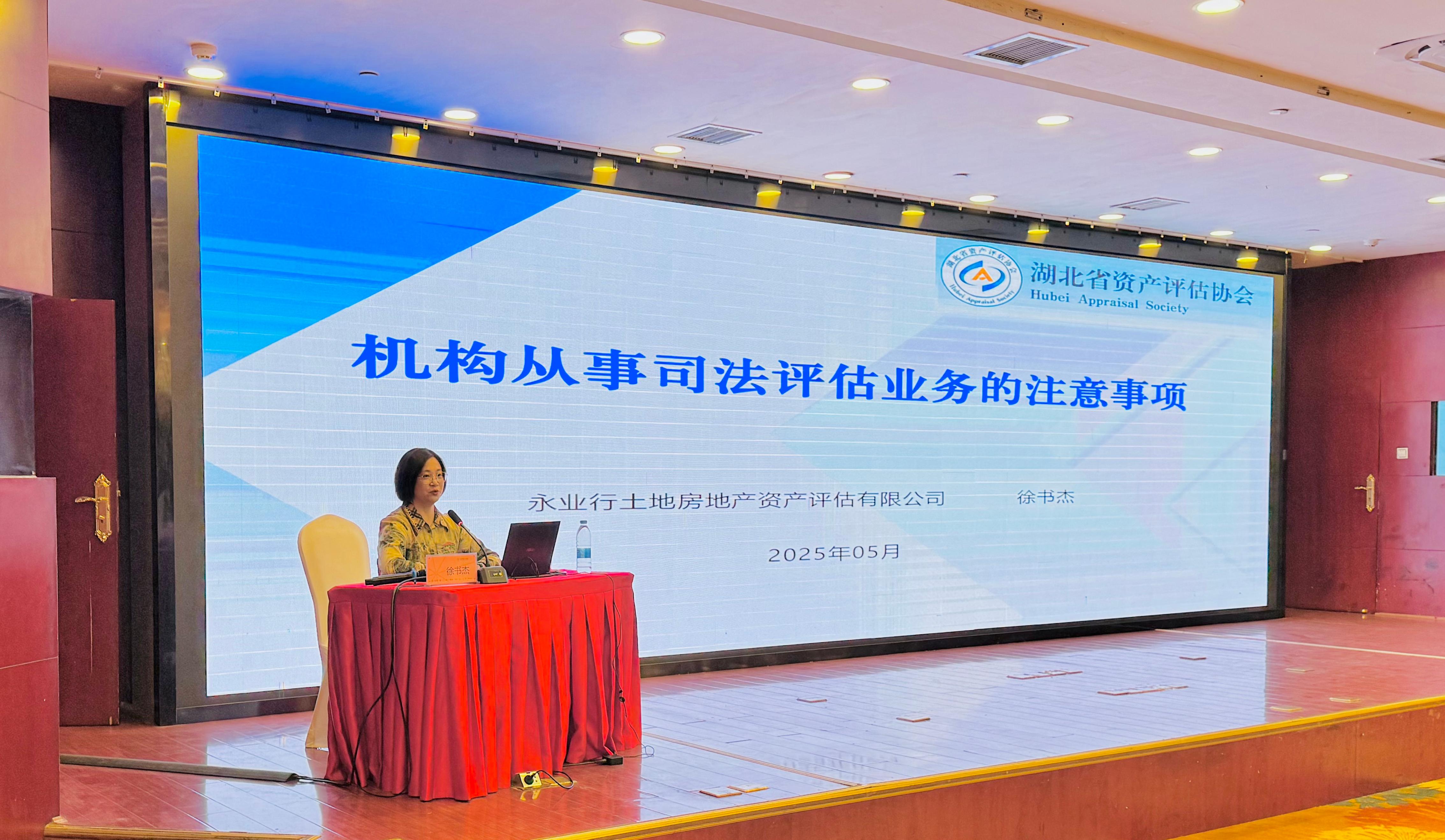 2025年5月7日至9日,湖北省资产评估协会主办的“2025年第二期资产评估师继续教育培训班”在襄阳举行。永业行价值评估事业部资产评估技术总监徐书杰应邀作《机构从事司法评估业务的注意事项》专题授课。