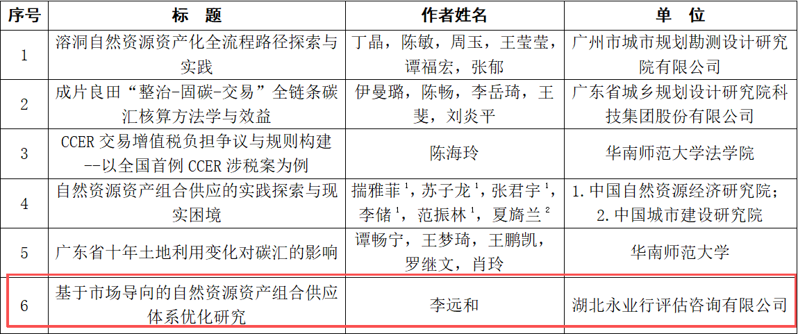 永业行论文入选广东省土地学会“自然资源资产包组合供应”优秀论文